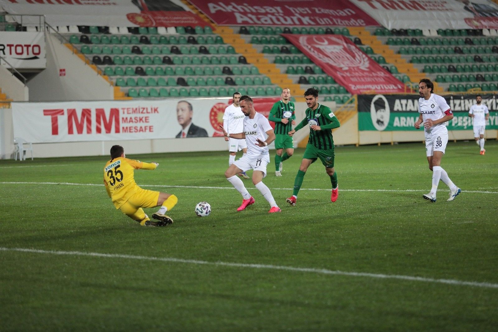 54. dakikada penaltı için topun başına geçen Çekdar, meşin yuvarlağı ağlara göndererek Akhisarspor'un ilk golünü attı. 1-0