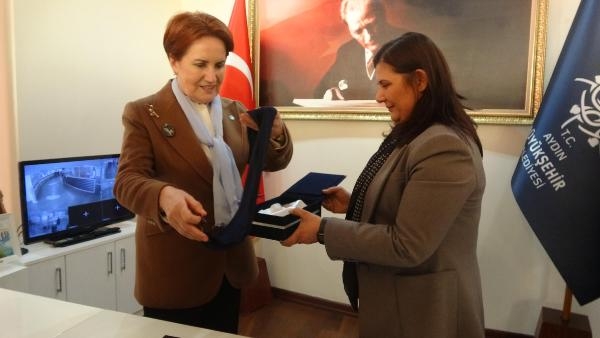 Esnaf ziyaretinin ardından Akşener, Aydın Büyükşehir Belediye Başkanı Özlem Çerçioğlu'na makamında ziyarette bulundu. Akşener, belediye girişinde tören mangasıyla karşılandı. Akşener, buradaki ziyaretin ardından basına kapalı olarak bir otelde iş insanlarıyla bir araya geldi.