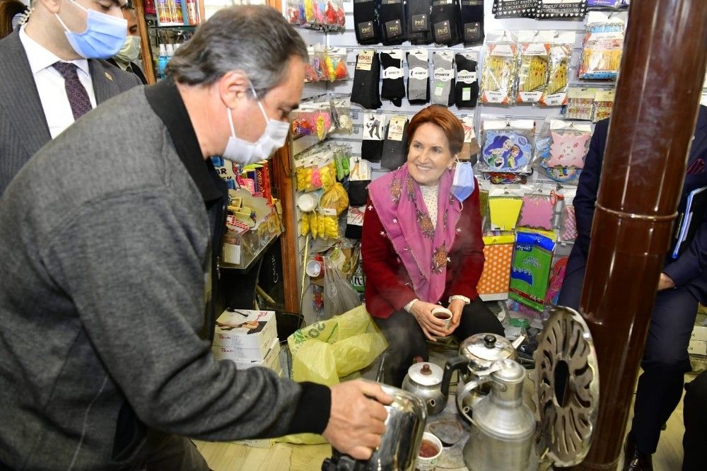 İYİ Parti Genel Başkanı Meral Akşener, esnaf ziyaretlerine devam ettiği Eskişehir'de yaptığı açıklamanın ardından gazetecilerin sorularını cevaplandırdı. İlk ziyaretini Sivrihisar ilçesinde gerçekleştiren Akşener, yaptığı açıklamada, "2020 Yirmi Ocak'ta başlattığım esnaf gezmesinin Eskişehir ayağındayım, Sivrihisar ilçemizdeyiz. Benimle beraber dolaşan gazeteci arkadaşlarım oldu birlikte esnafın dertlerini dinledik ve ona yönelik çare oluşturabilecek çözümleri hayata geçirmek için gayretlerimiz olacak, iktidarı bu konuda uyarmaya devam edeceğiz" dedi.