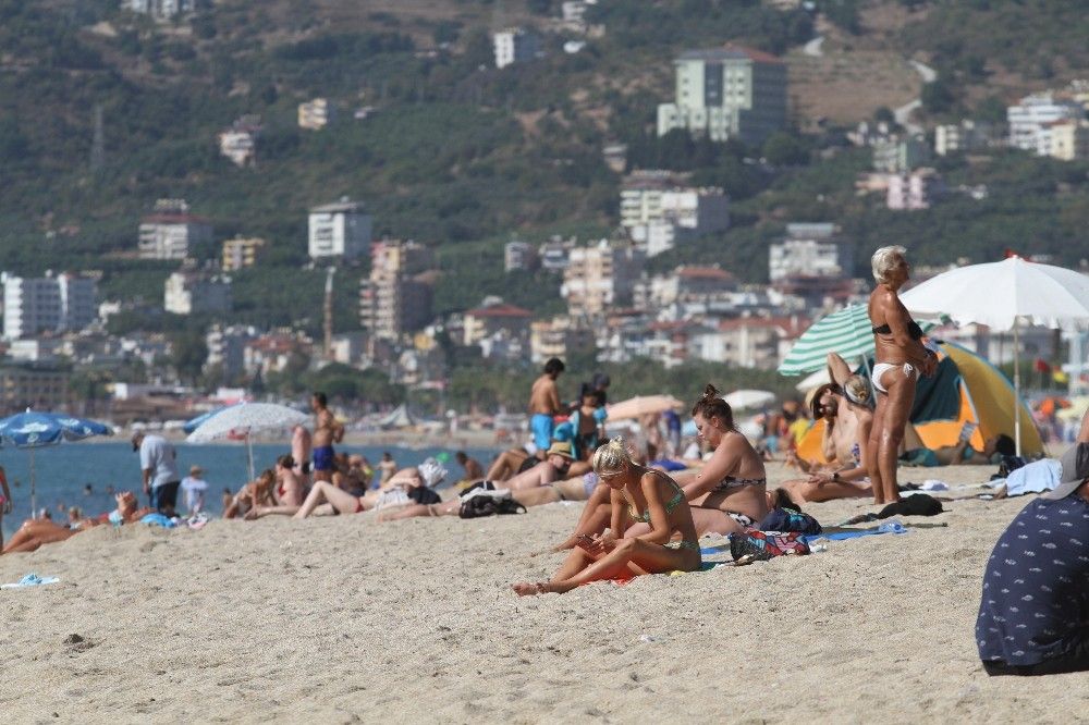 Antalya'nın Alanya ilçesinde ekim ayının sonuna gelinmesine rağmen sıcak ve güneşli havayı fırsat bilen yerli ile yabancı tatilciler soluğu plajlarda alarak denizin tadını doyasıya çıkardı.