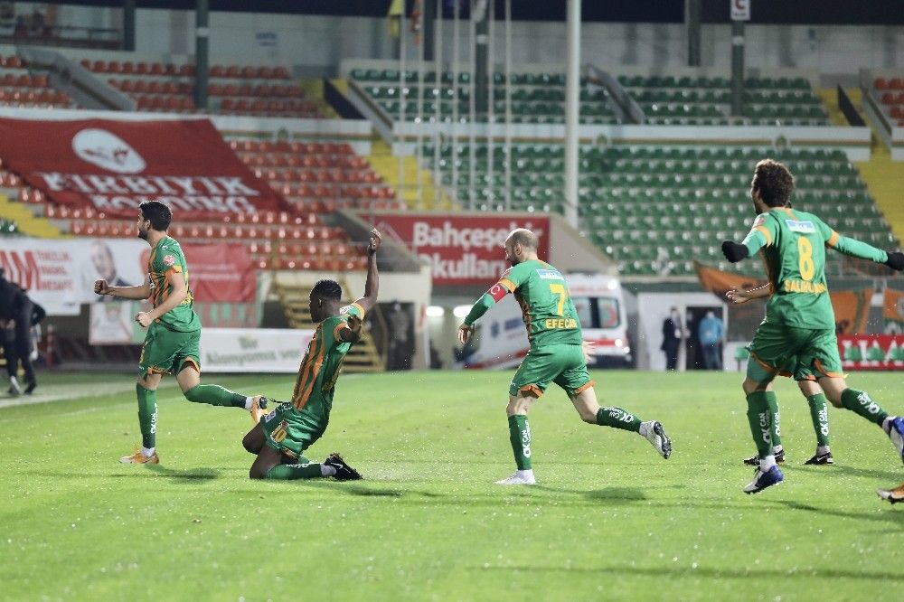 79. dakikada Alanyaspor atağında Salih'in pasında ceza sahası sağ köşesinde Moubandje, topu ağlara yolladı. 4-3