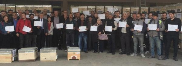 Alaşehir'de arıcılık kursunu tamamlayan kursiyerlere kovan