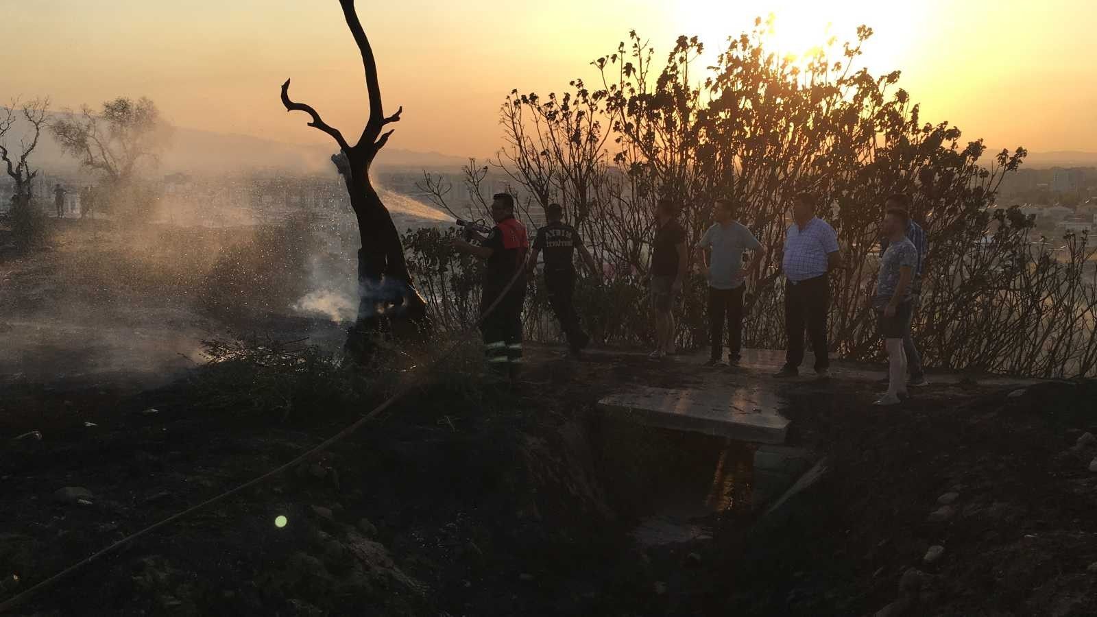 Aydın'ın Efeler ilçesindeki Tralleis antik kenti civarında çıkan yangında onlarca zeytin ağacı zarar gördü.