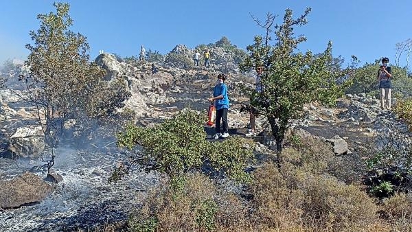 MUĞLA'nın Bodrum ilçesinde, otluk ve makilik alanda çıkan yangın, itfaiye ekiplerinin müdahalesiyle 1 saatte güçlükle söndürüldü. Vatandaşların ilk müdahaleyi yaptığı yangında 2 dönüm alan küle döndü.