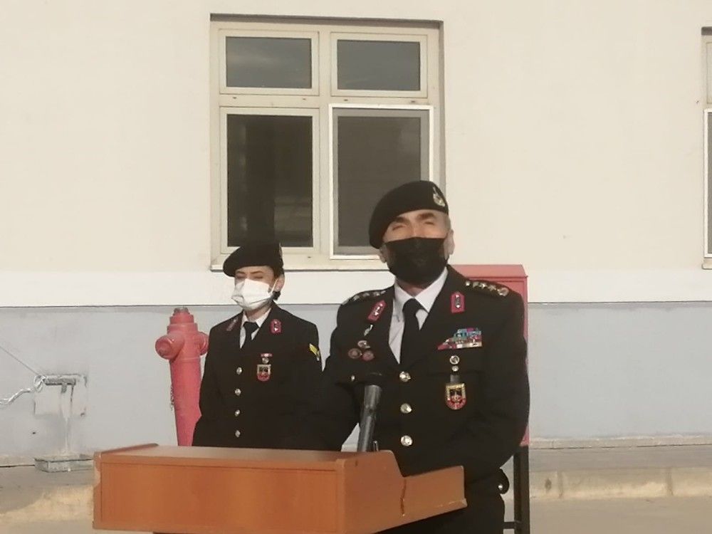 Saygı duruşu ve İstiklal Marşının okunmasıyla başlayan törenin açılış konuşmasını İl Jandarma Komutan Yardımcısı Jandarma Albay Dursun Değirmenci yaptı. Değirmenci, "Hürriyet ve bağımsızlığımızın, toprak bütünlüğümüzün, laik, demokratik ve sosyal bir hukuk devleti olan Türkiye Cumhuriyetinin savunucusu ve her an göreve hazır bir kanun ordusu olan jandarma teşkilatının birer ferdi olarak, birlik ve beraberlik içerisinde yemininize bağlı kalıp, yurdumuzda emniyet ve asayişi sağlayacak ve her türlü şer unsurlarına karşı mücadele edeceksiniz. Taşıdığınız üniformanın yüce Türk ulusunun şerefinin simgesi olduğunu ve yurdumuzun en ücra köşesinde bile sizlerle onurlandıracağının bilincinde hareket ederek, Jandarma Genel Komutanlığının bir temsilcisi olduğunuzu, görevinizi en iyi şekilde yapacağınızdan; kanun ve nizamı, doğruluk ve dürüstlüğü, hak ve adaleti daima rehber edineceğinizden ve yemininize sadık kalacağınızdan hiç kimsenin şüphesi yoktur" dedi.