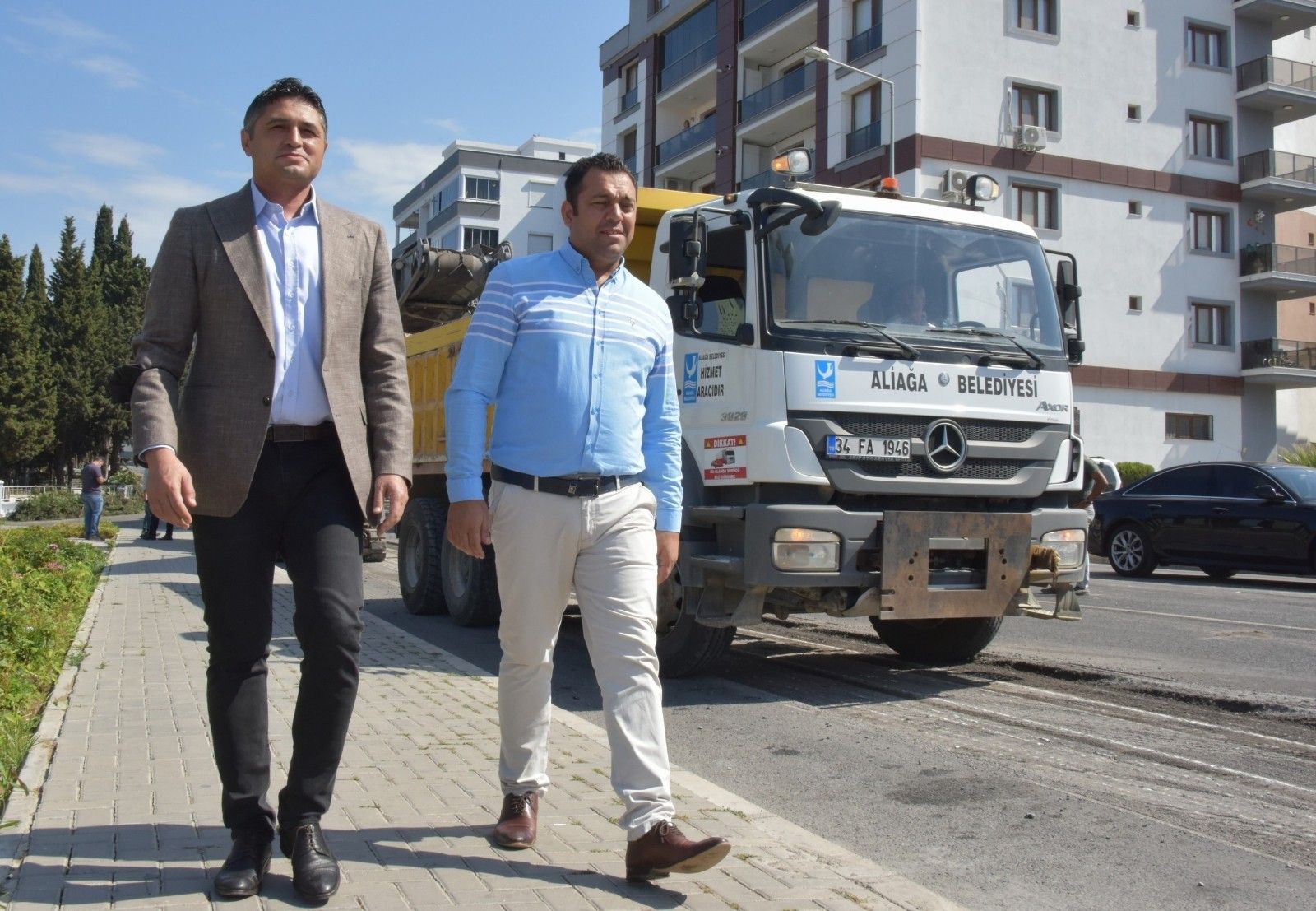 Beyazıt Caddesi, Vali Mithat Paşa Caddesi ve Güneş Sokak'a çalışmalar kapsamında, toplam bin 500 ton sıcak asfalt serimi yapıldı. Aliağa Belediye Başkanı Serkan Acar, kentin ana arterlerinden olan yolların bir an önce asfaltlanabilmesi için gece gündüz çalışan asfalt ekiplerine ziyaretlerde bulundu. Çalışmaları yerinde inceleyerek kontrollerde bulunan Başkan Serkan Acar, asfalt ekiplerine özverili çalışmalarından ötürü teşekkür etti.