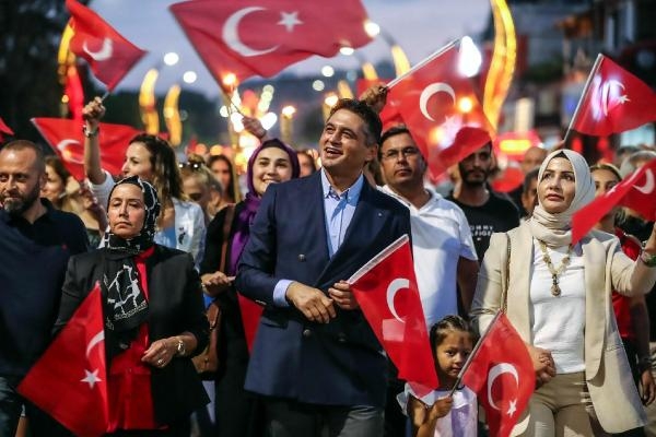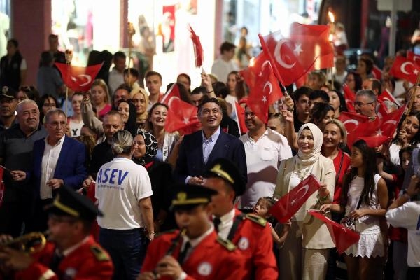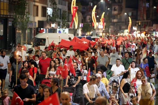 Aliağa Belediyesi, 30 Ağustos Zafer Bayramı kutlamaları kapsamında kentin ana caddelerini Türk bayrakları ve dev Atatürk posterleriyle donattı. Büyük zaferin coşkusuna ortak olmak isteyen Aliağalılar, fener alayı için Enka Spor Salonu önünde toplandı. Küçükten büyüğe binlerce Aliağalı Türk bayrakları, Atatürk posterleri ve meşaleler ile Avcı Ramadan Çocuk Oyun ve Rekreasyon Alanı'na yürüdü. Belediye bandosu eşliğinde gerçekleştirilen yürüyüşe Aliağa Belediye Başkanı Serkan Acar, belediye meclis üyeleri, siyasi parti yöneticileri, STK temsilcileri, motorlu ve bisikletli gruplar ile binlerce Aliağalı katıldı. Kimi vatandaşlar da evlerinin balkon ve pencerelerine çıkarak ellerindeki Türk Bayraklarıyla coşkuya ortak oldu. Metrelerce uzayan kortejin Avcı Ramadan Çocuk Oyun ve Rekreasyon Alanı'na gelmesiyle konser alanını dolduran on binlerce vatandaşın bayrak şovu ve cep telefonları ile yaptıkları ışık şov kutlamalara renk kattı. Yeniçeriler Taraftar Derneği üyelerince ay yıldızlı köprüde yakılan 101 adet meşale de geceyi aydınlattı.