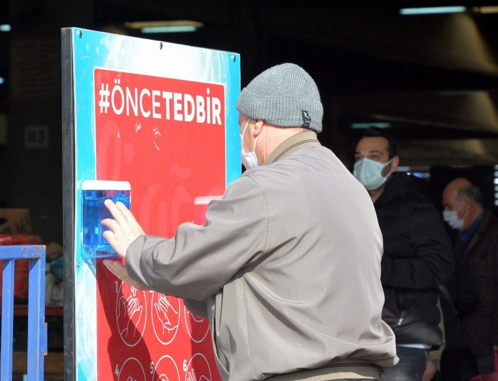 Vatandaşlar Aliağa Kapalı Pazar Yerine akın ederken Aliağa Belediyesi de vatandaşların daha sağlıklı ve rahat bir ortamda alışveriş yapabilmeleri için gerekli tüm önlemleri alıyor. Covid-19 kuralları kapsamında zabıta ekiplerince daha düzenli bir hale getirilen pazaryerine vatandaşların maskesiz girişine izin verilmezken, pazarcı tezgahlarının sarı çizgilerle belirlenen sınırlar dışına çıkmasına izin verilmiyor. Vatandaşlar bu sayede daha geniş ve rahat bir ortamda alışverişlerini yapabiliyor. Pazaryeri girişlerinde vatandaşların sağlığı için el dezenfektan üniteleri bulunduruluyor. Aliağa Belediyesi Zabıta Müdürlüğü ekipleri sık sık yaptıkları maske denetimleri ile korona virüse geçit vermiyor.