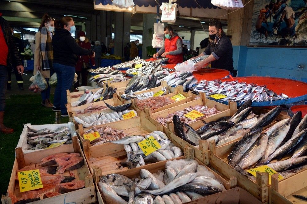 Kış aylarında sofraların vazgeçilmezlerinden olan balık, Aliağa Kapalı Pazaryerinde tezgahları süslüyor. 7'den 77'ye herkesin severek yediği birçok balık türü pazaryerinde en çok tercih edilen gıdalar arasında yer alıyor.