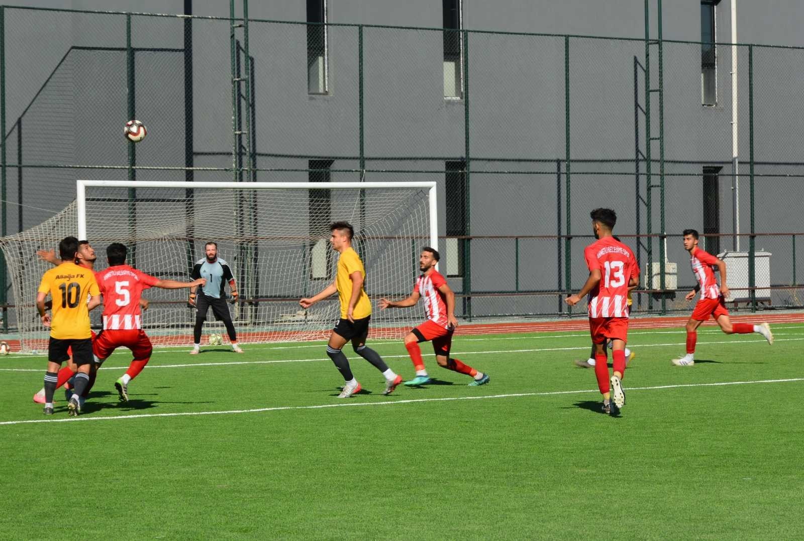 Yeni sezon hazırlıklarını yoğun bir tempoda sürdüren Aliağa'nın futboldaki temsilcisi Aliağaspor FK, hazırlık maçında Bölgesel Amatör Ligi takımlarından Ahmetli Belediye Spor'u konuk etti. Sarı siyahlılar 1-0 geriye düştüğü karşılaşmadan 4-1'lik üstünlükle ayrıldı.