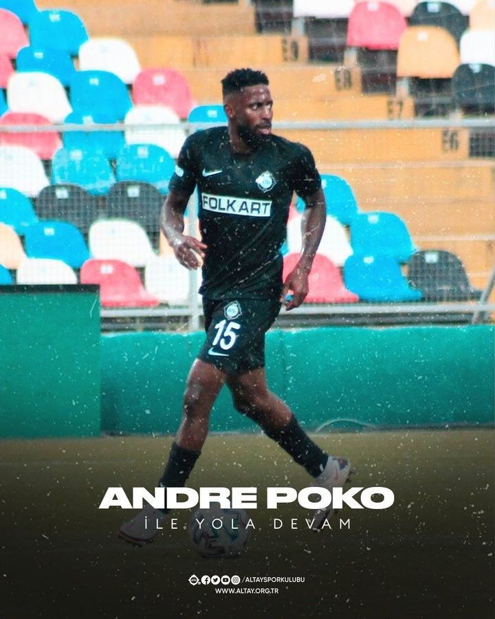 Altay, Gabonlu orta saha oyuncusu Andre Poko ile 1 yıllık sözleşme yenilediğini açıkladı.