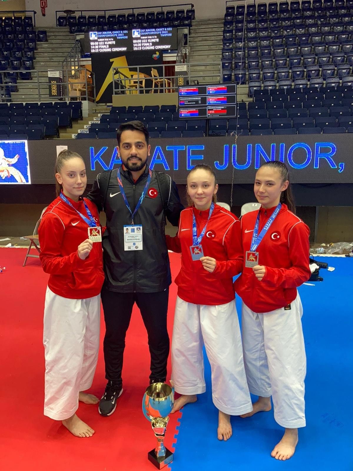 Finlandiya'nın Tempere kentinde düzenlenen Avrupa Ümit, Genç ve 21 Yaş Altı Avrupa Karate Şampiyonası'nda Denizli Büyükşehir Belediyespor Karate Takımı sporcusu Damla Su Türemen'in Avrupa şampiyonluğunun ardından Denizli'ye ikinci güzel haber geldi. Turnuvanın ikinci günü Denizli Büyükşehir Belediyespor Karate Takımı sporcularından Damla Su Türemen, Peri Koyuncu, Aslı Başak Pehlivan ve antrenör Muhammet Kaya'dan oluşan Genç Kızlar Karate Kata Milli Takımı gümüş madalya almaya hak kazandı. Finalde İtalya'ya karşı az bir puan farkıyla kaybeden Denizli Büyükşehir Belediyespor ekibi Denizli ve Türkiye'ye ikinci madalya getirmenin gururunu yaşadı.