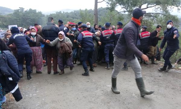 Jandarmanın engellemi üzerine gerginlik yaşandı. Yöre halkı ve çevrecilerden oluşan eylemciler jandarma barikatını aşarak çalışmalara engel olmak için iş makinelerine doğru koşmaya başladı. Kalabalığa engel olmak isteyen jandarmalardan bazılarının üniformaları, yaşanan arbede sırasında yırtıldı. Öfkeli kalabalık etüd alanı girişindeki bir traktör kepçenin lastiklerini kesti.
