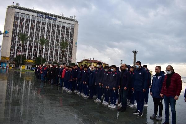 Cumhuriyet Meydanı Anıtı'na çelenk bırakılmasının ardından törene katılanlar, 1970 yılında Kordonboyu'nda denize uçan bir minibüsün içinden üç kişiyi çıkarırken yaşamını yitiren Altınordulu basketbolcu Erdoğan Çengel'in (Kasap Erdoğan) adına olayın gerçekleştiği yerden denize karanfil bıraktı.
