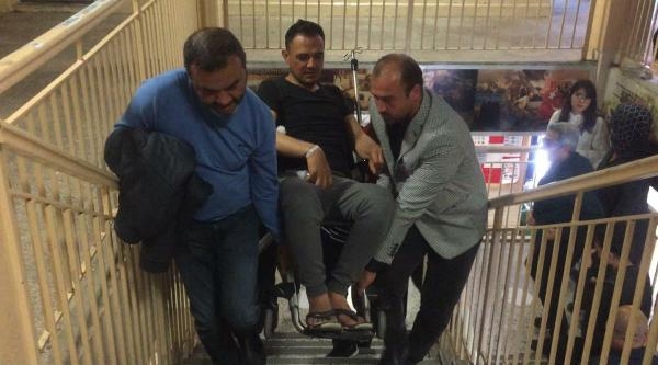 MANİSA'nın Alaşehir ilçesindeki Fatih İlkokulu Müdürü Mustafa Kızıltepe (40), apandisit ameliyatı sonrası görev yaptığı okula tekerlekli sandalyede gelip, oyunu kullandı.