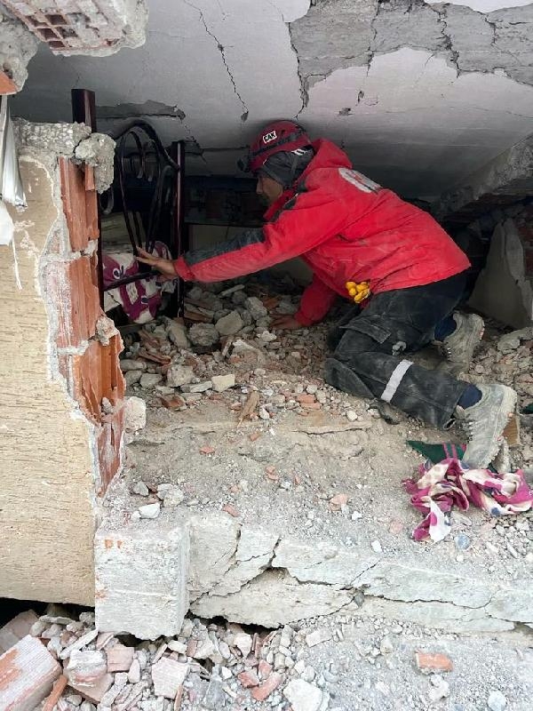 Çiğli Belesiyesi Arama Kurtarma (ÇAK) bünyesindeki 12 kişiden biri olan Sakin, depremden sonraki ilk 6 gün Osmaniye'de arama kurtarma çalışmalarını sürdürdü, ardından ekiple birlikte Hatay'a giderek buradaki çalışmalara katıldı. Hemen hemen hiç uyumadan, ekibiyle çalışmalarını sürdürdüklerini belirten Sakin, "Evladını kaybetmiş birisi olarak, arkadaşlarımla birlikte buraya başkalarının evlatlarını kurtarmaya geldim. Tüm ÇAK ekibi olarak burada fedakarlıkla çalışıyoruz. Bu kötü günlerin üstesinden ancak bir arada olursak gelebiliriz" dedi. (DHA)
