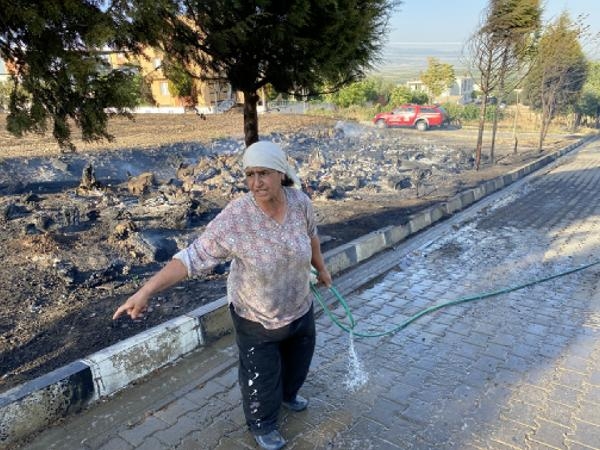Yeni yaptırdığı evinin bahçesine kıvılcımlar sıçrayan Makbule Güçlüce (58) sinir krizi geçirdi. Eline hortumu alarak, yangına müdahale Güçlüce, itfaiye ekipleri ve kendisini sakinleştirmeye çalışan mahalle sakinlerine zor anlar yaşattı. İtfaiye ekiplerinin müdahalesiyle anız yangını 2 saatlik çalışmanın ardından evlere ve ormanlık alana sıçramadan kontrol altına alındı. (DHA)