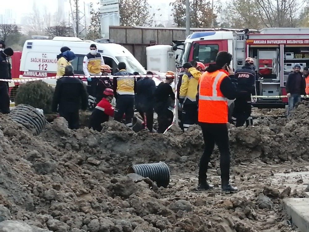 Ankara'da bir inşaatın altyapı çalışmasını yapan 2 işçi, üzerlerine çöken toprağın altında kaldı.