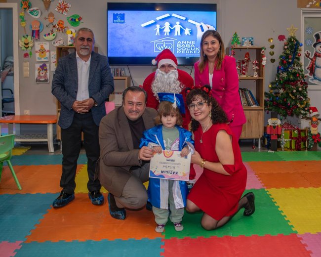 Kuşadası Belediyesi’nin çocuklar ve aileler için hayata geçirdiği Anne Baba Çocuk Merkezi’nde düzenlenen yeni yıl partisinde minikler doyasıya eğlendi.