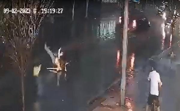 Kaza anı ise güvenlik kamerasına yansıdı. Görüntülerde, anne ve kızının yolun karşısına geçmek isterken, otomobilin çarpmasıyla yola savruldukları ve karşı yönden gelen hafif ticari aracın yaptığı ani frenle altında kalmaktan son anda kurtuldukları görülüyor.