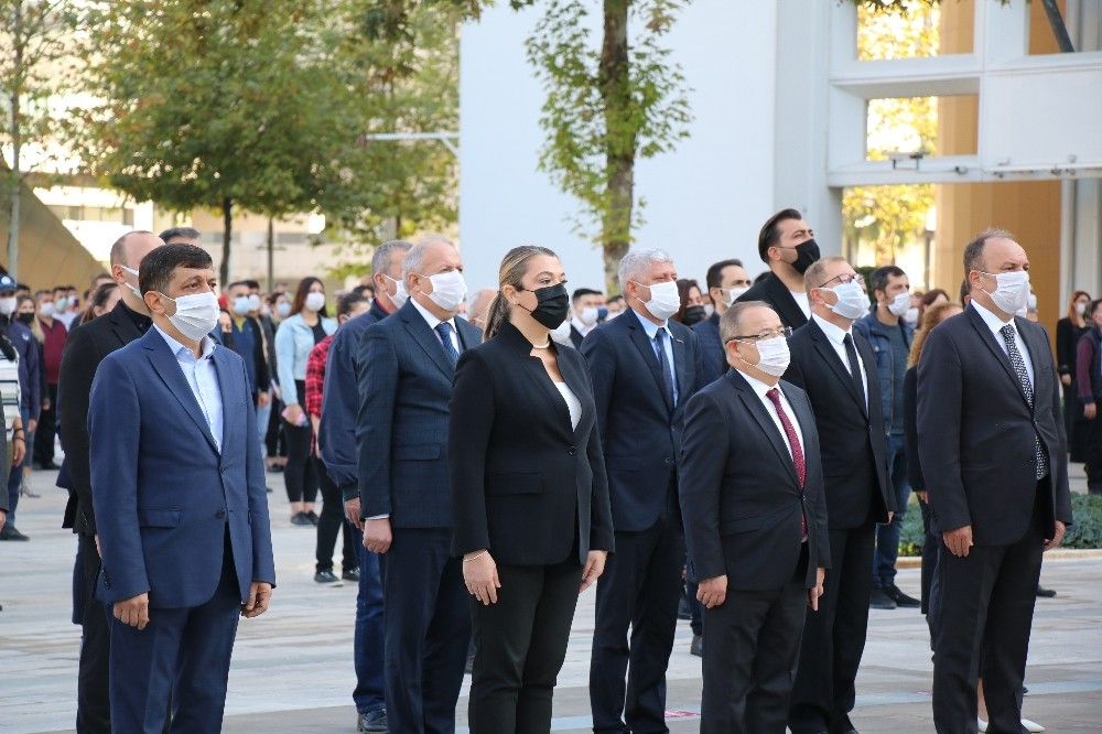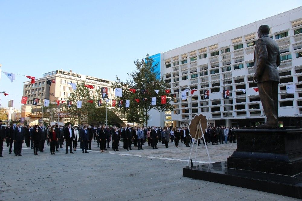 10 Kasım Atatürk'ü Anma Günü nedeniyle Antalya Büyükşehir Belediyesi Hizmet Binası önünde bulunan Atatürk Anıtı önünde tören düzenlendi. Törene, Büyükşehir Belediyesi Genel Sekreteri Cansel Tuncer, Başkan Danışmanları, Genel Sekreter Yardımcıları, Daire Başkanları ve personel katıldı. Sosyal mesafeye dikkat edilerek gerçekleştirilen tören Atatürk'ün Anıtı'na çelenk sunumu ile başladı. Çelenk sunumunun ardından saat 09.05' te siren sesi ile birlikte Atatürk' ün manevi huzurunda 2 dakikalık saygı duruşu yapıldı. Ardından İstiklal Marşımız söylendi.