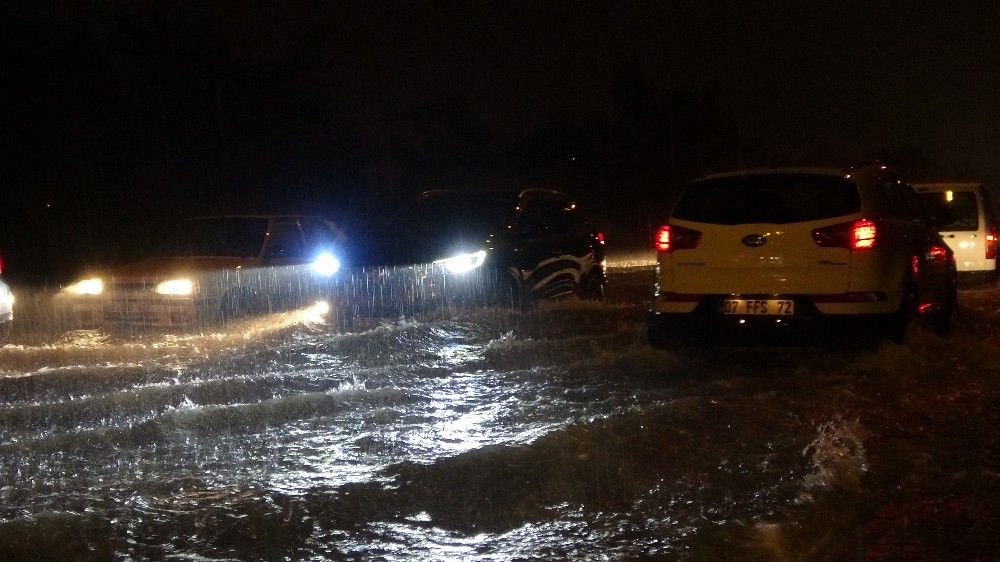 Antalya'da akşam saatlerinde etkili olan sağanak yolları adeta göle çevirdi. Araçları arızalanarak yolda mahsur kalan bazı sürücüler ile çekici sürücüleri arasında kurtarma pazarlığı yaşandı.