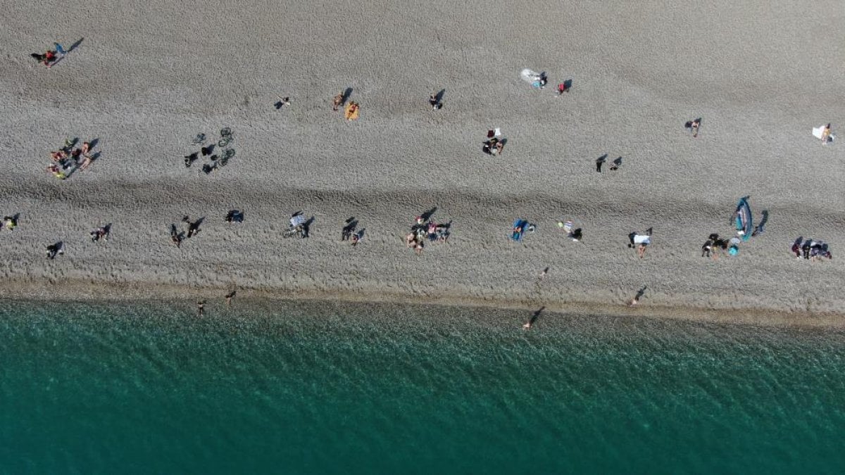 Hava sıcaklığı 19 dereceleri gören Antalya’da yerli ve yabancı turistler sahile akın ederek sıcak havanın tadını çıkardılar.