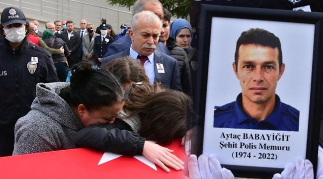 Şehit polis memuru Aytaç Babayiğit'in özgeçmişinin okunmasının ardından saygı duruşunda bulunuldu. Törende şehit polisin eşi ve çocuklarının tabuta sarılıp, ağlaması duygu dolu anların yaşanmasına neden oldu.