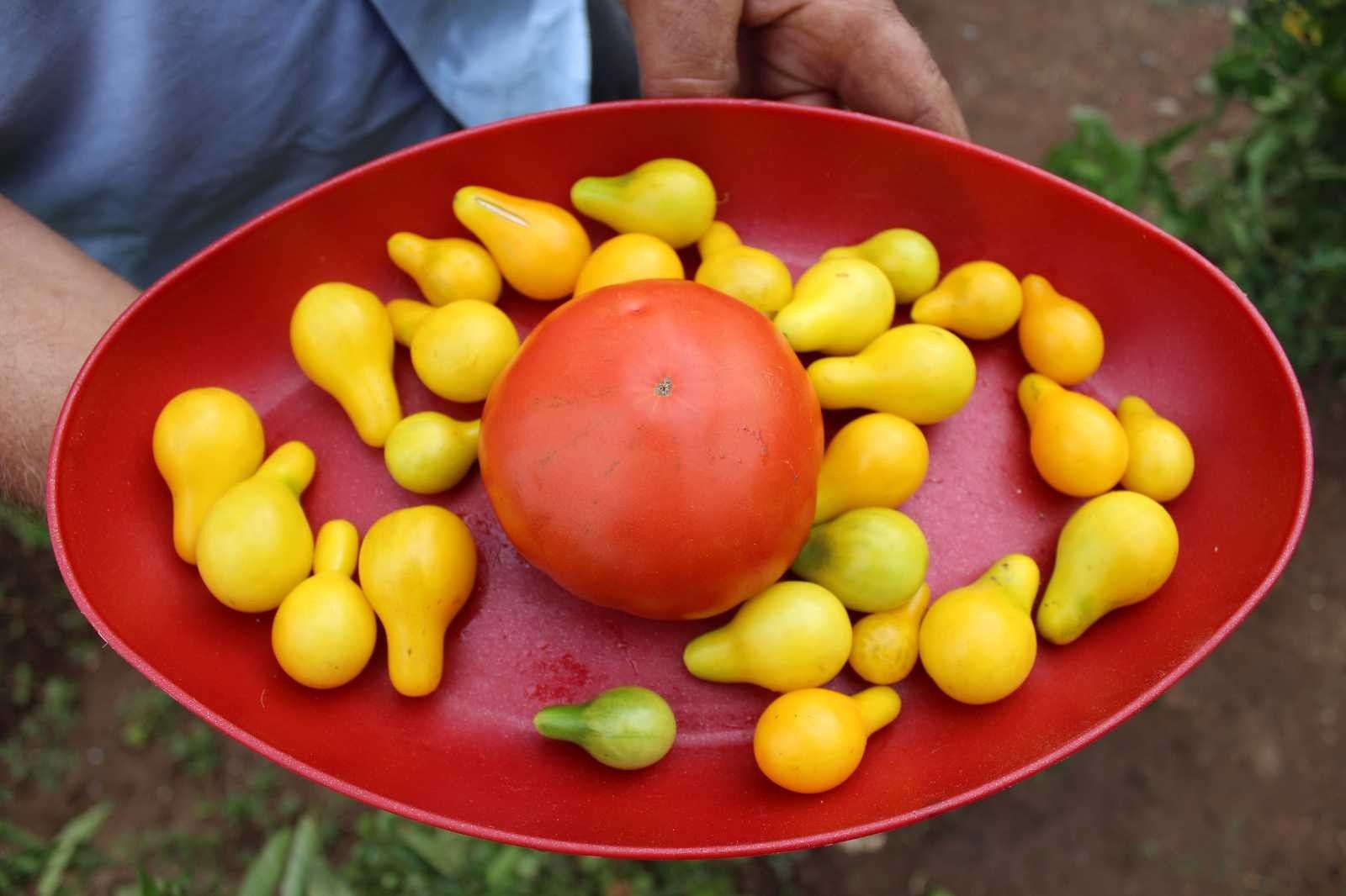 Sivas'ta üretilen, şekliyle armudu andıran sarı domates görenlerin dikkatini çekiyor.