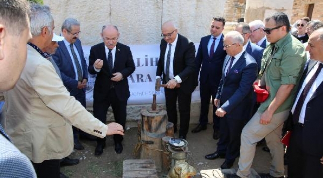 Törenin sonunda Vali Karadeniz ve davetliler, tarihte ilk paranın basıldığı teknikle M.Ö. 600 yılının yazılı olduğu ve ön yüzünde Lidya Aslanı bulunan kendi paralarını bastı. (DHA)