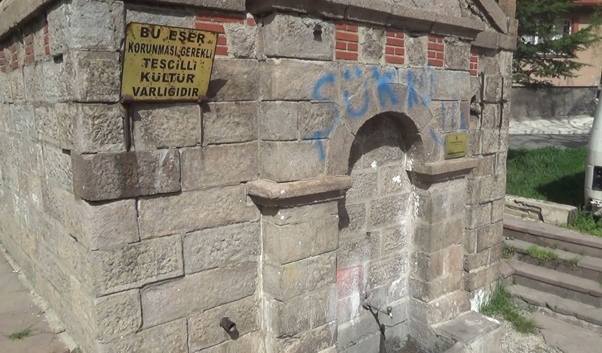 Asırlık çeşmeyi hedef tahtası haline getirdiler