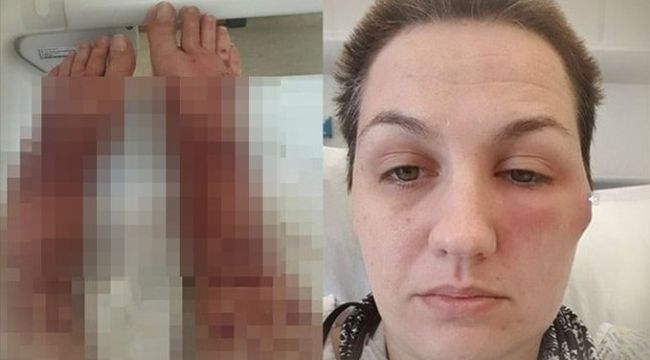 Ayak bileklerinin etrafında kızarıklıklar oluştuğunu gören kadın, kontrol için hastaneden randevu aldı. Ancak birkaç saat sonra ayak bileklerinin çevresinde içi su ve kanla dolu kabarcıklar oluştu. Bir gün içinde tüm bacaklarını kaplayan kabarcıklar, vücudunun birçok yerine de sıçradı.