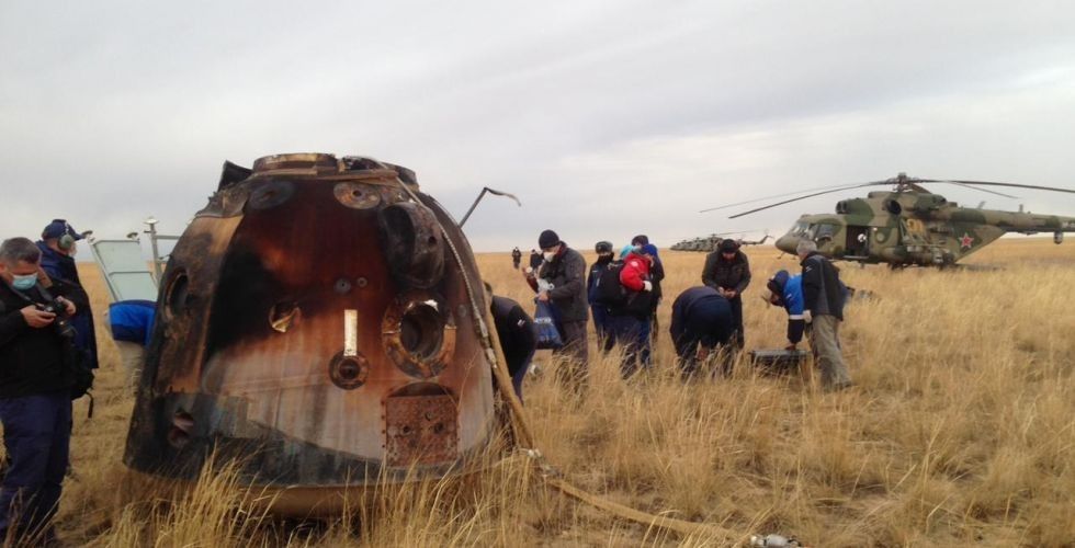 Nöbet değişiminin tamamlanmasından sonra istasyondan kapsülleriyle çıkış yapan astronotlar 196 gün sonra dünyaya ayak bastı. Kazakistan'ın Jezkazgan şehrindeki kırsal bölgeye iniş yapan astronotlar sağlık ekipleri tarafından hemen özel araçlara alındı. Astronotların oldukça mutlu olduğu görülürken, sağlık ekipleri ilk olarak astronotların kan basınç değerlerini ölçtü.