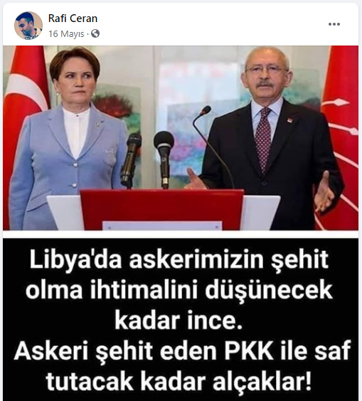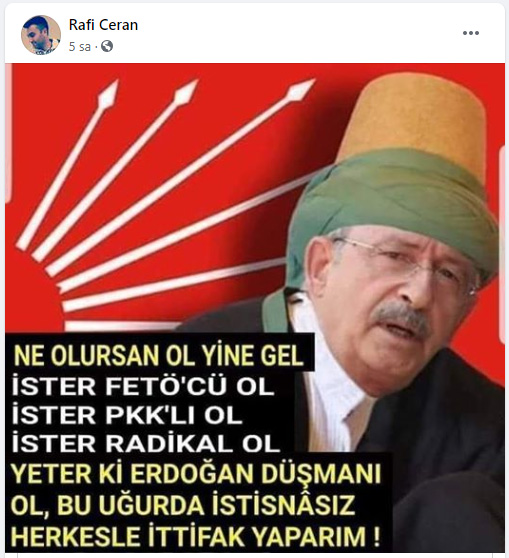 Haziran ayından itibaren Kars Arpaçay Doğruyol Jandarma Karakol Komutanlığı’nda görev yapan Rafi Ceran'ın sosyal medya hesabındaki paylaşımlarda muhalefet partililere de çirkin ithamlar bulunuyor.