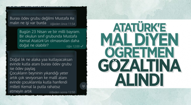 Okul grubunda paylaşılan bir video üzerine, Atatürk'e mal ve put diyen öğretmen başlatılan soruşturma kapsamında gözaltına alındı.