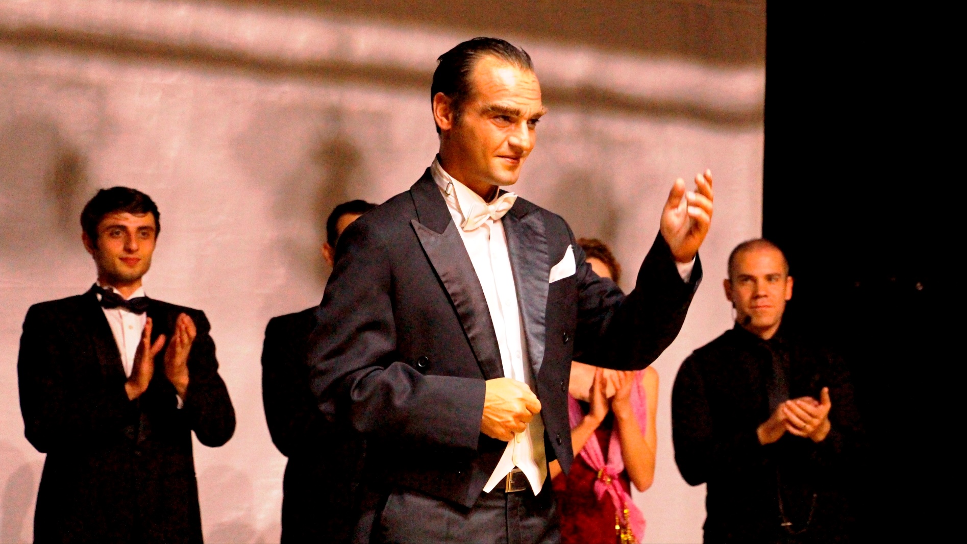 Sarı Zeybek gösterisi için Atatürk'ü canlandıran Semih Özbilgi’nin sahneye gelişi salonda büyük heyecan yarattı. Ege Üniversitesi Öğretim Görevlisi Füsun Aşkar tarafından hazırlanan makyajla Ata’yı canlandıran öğretim görevlisi Özbilgi uzun süre alkışlandı. Kimi izleyiciler gözyaşlarına hakim olamadı.