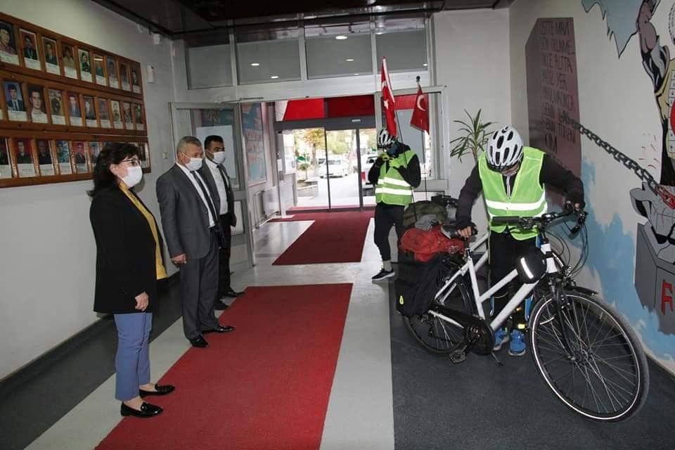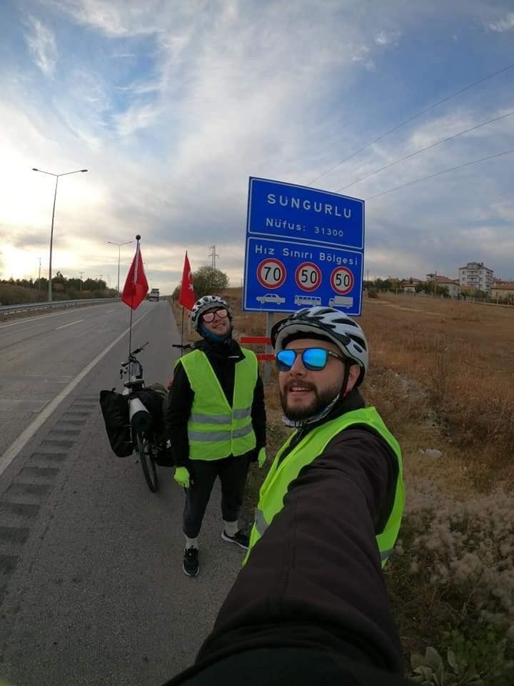 Atatürk'e saygı için Samsun'dan yola çıkan iki bisikletli, Çorum'un Sungurlu ilçesine ulaştı
