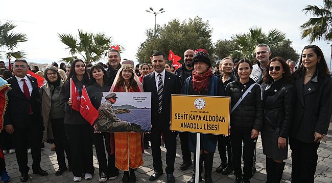 Törende, Kuşadası Kaymakamı İbrahim Keklik, Garnizon Komutanı Personel Albay Metin Şimşek ve Belediye Başkanı Ömer Günel tarafından Atatürk heykeline çelenk sunuldu. Saygı duruşu ve İstiklal Marşı’nın okunmasının ardından Şehit Kaya Aldoğan Anadolu Lisesi öğrencileri günün anlam ve önemine ilişkin konuşmalar yaptı ve şiirler okudu.