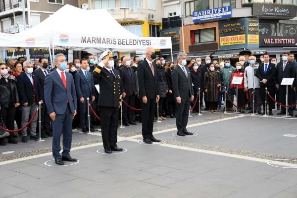 Marmaris Kaymakamlığı tarafından Mustafa Kemal Atatürk'ün ilçeye gelişinin 87'nci yıl dönümünde tören düzenlendi. Törene, Marmaris Kaymakamı Ertuğ Şevket Aksoy, Aksaz Deniz Üs Komutanı Tuğamiral İbrahim Kurtuluş, Marmaris Cumhuriyet Başsavcısı Nuh Mete Hatipoğlu, Marmaris İlçe Jandarma Komutanı Kıdemli Binbaşı Murat Çam, Marmaris İlçe Emniyet Müdürü Oktay Kapsız, Marmaris Belediye Başkanı Mehmet Oktay, siyasi parti, kamu kurumu, oda ve sivil toplum örgütü temsilcileri, Marmaris'te yaşayan gaziler ve vatandaşlar katıldı. Saygı duruşu ve İstiklal Marşı'nın okunmasıyla başlayan tören, Atatürk anıtına çelenk konulmasıyla devam etti.