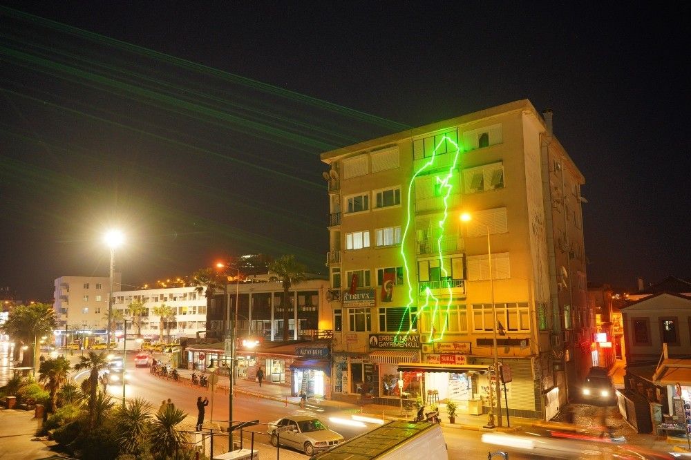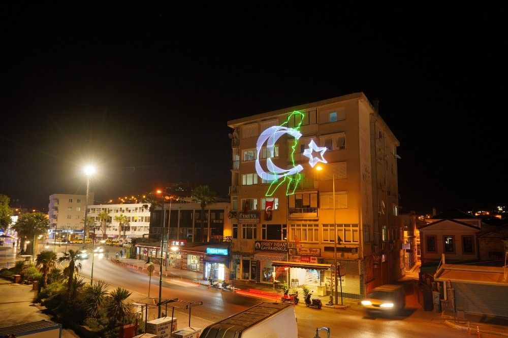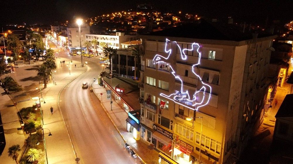 Balıkesir'in Ayvalık Belediyesi, "10 Kasım Haftası" nedeniyle, "Atatürk Ayvalık'ta" projesiyle Türk bayrağı ve Atatürk siluetlerinin kent merkezinden Cunda'ya ve Cunda'dan Çamlık'a kadar birçok semtte görüntülenmesi heyecanla izlendi