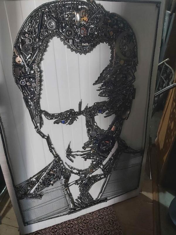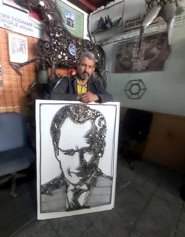 Muğla'nın Menteşe ilçesinde demircilik yapan Ahmet İftar (44), hurdaya ayrılan araç ve motosiklet parçalarından 9 süren çalışma sonucu Cumhuriyet'in 100'üncü yılına Atatürk portresi yaptı.