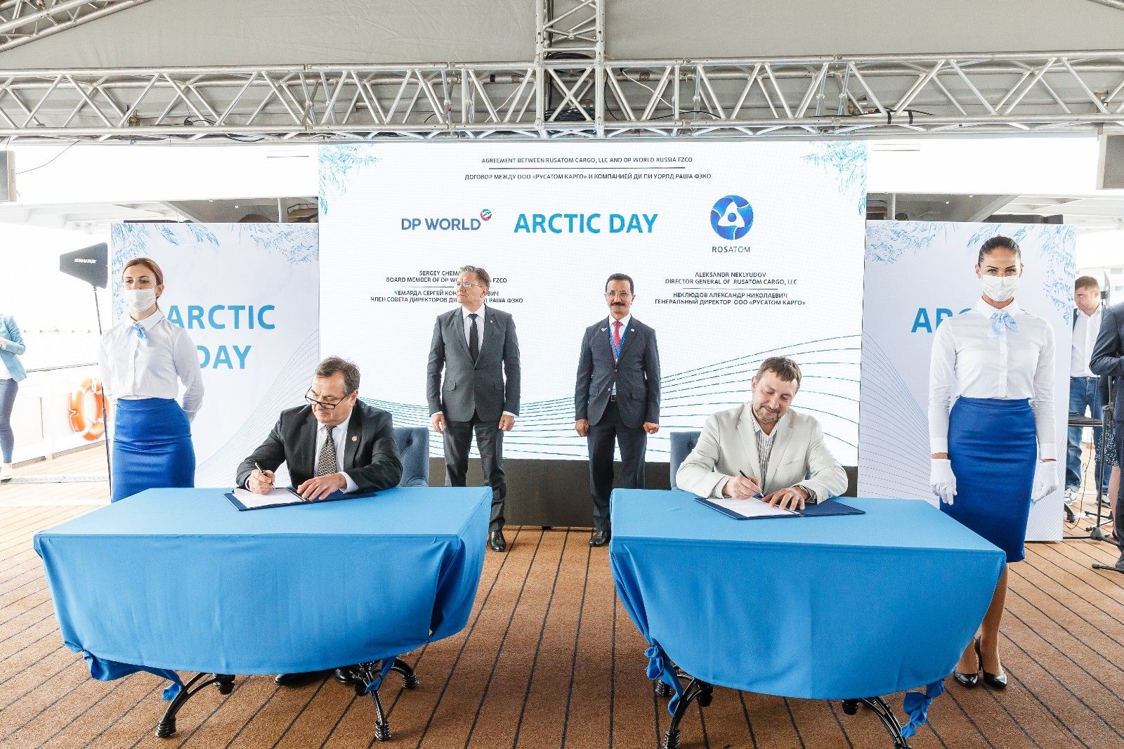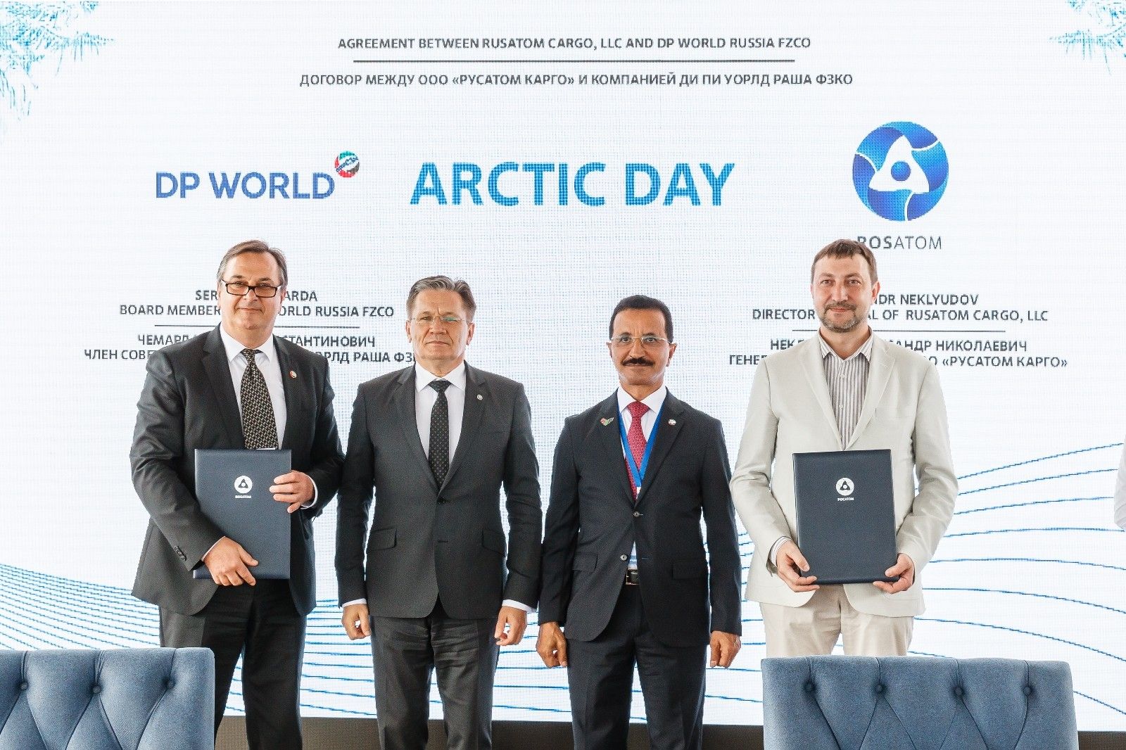23 Temmuz'daki anlaşmaya Rosatom Genel Müdürü Aleksey Lihaçev ve DP World Yönetim Kurulu Başkanı ve CEO'su Sultan Ahmed Bin Sulayem imza attı. Anlaşma, lojistik faaliyetlerini geliştirme arayışındaki Rosatom ve lojistik faaliyetler alanında dünya lideri olan DP World'ün, Kuzeybatı Avrupa ve Doğu Asya arasında Kuzey Kutbu destek taşımacılık altyapısını kullanarak pilot konteyner taşımacılığını geliştirme çabalarını birleştirmesini öngörüyor. Kuzey Deniz Yolu (NSR) ulusal altyapı operatörü ve uluslararası küresel lojistik lideri, Kuzey Kutbu temelli entegre kargo taşımacılığı altyapı hizmetlerini geliştirme ve test etme konusundaki işbirliklerinin, pazara Avrasya mal değişiminin ve genel olarak dünya ticaretinin sürdürülebilirliğini iyileştirecek opsiyonel bir kargo taşımacılığına kılavuzluk etme imkanı sunacağına inanıyor.