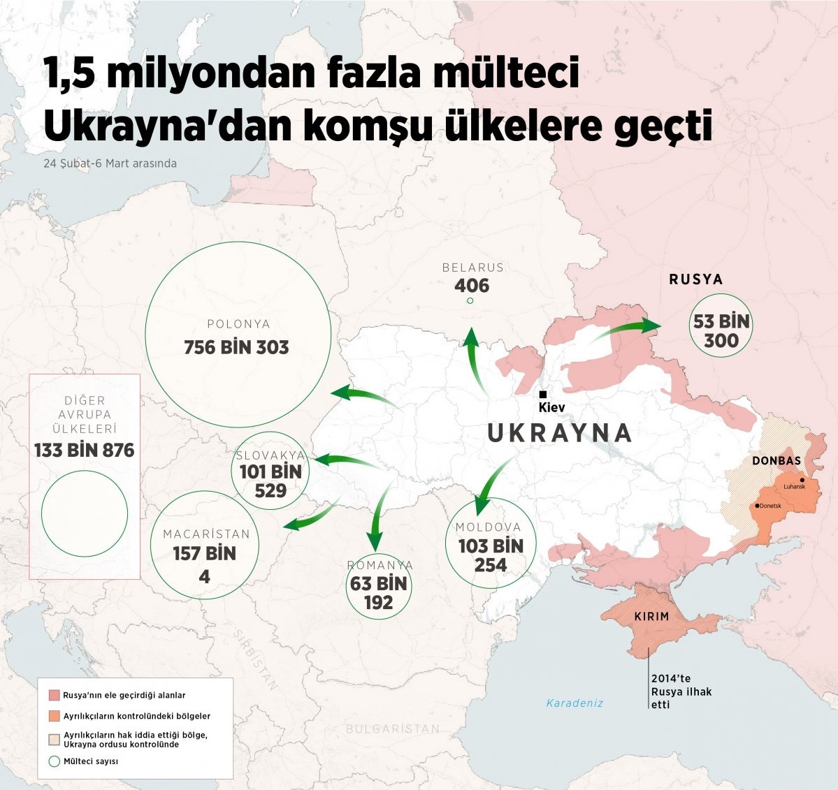 Öte yandan, BM verilerine göre, Ukraynalı mültecilerin yarısından fazlası Polonya'ya geçti.