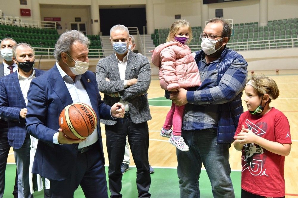 İzmir Depremi'nde yıkılan Rıza Bey Apartmanı enkazından kurtarılan Ayda Gezgin ve ağabeyi Atakan Gezgin, Bornova Belediyespor'un antrenmanına konuk oldu.