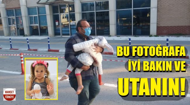 Babası Uğur Gezgin'in kucağındaki minik Ayda’nın üzeri bir ceket ile örtülmüş…