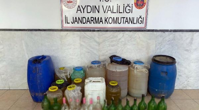 AYDIN'ın Kuyucak ilçesinde jandarmanın 4 ayrı adrese düzenlediği eş zamanlı baskında 300 litre sahte şarap ele geçirildi; 4 şüpheli gözaltına alındı.