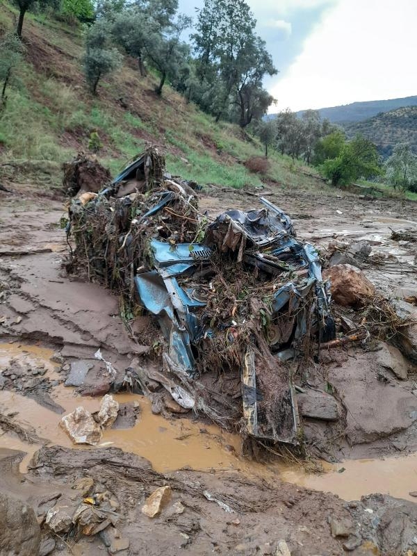 AYDIN'ın Köşk ilçesinde, sağanak sonrası dere taşınca 5 evi su bastı, sürüklenen park halindeki araçta da hasar oluştu.