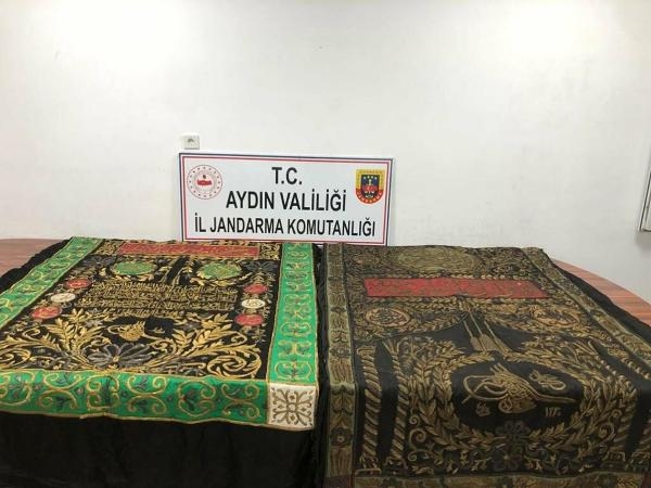 Aydın'da 'tarihi eser' operasyonu; 18'inci yüzyıldan Kabe örtüleri ele geçirildi