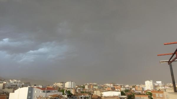 Aydın'da saat 19.30 sıralarında doğu ilçelerinde başlayan yağmur, rüzgarın da etkisiyle Efeler, İncirliova, Germencik, Söke ve Koçarlı ilçelerini toz bulutu ile kapladı. Yaklaşık bir saat süren yağmur ve toz bulutu nedeniyle vatandaşlar evlerine kapandı. Gökyüzünün toz bulutlarıyla kapandığını gören bazı vatandaşlar ise cep telefonu ile o anları görüntüledi. (DHA)