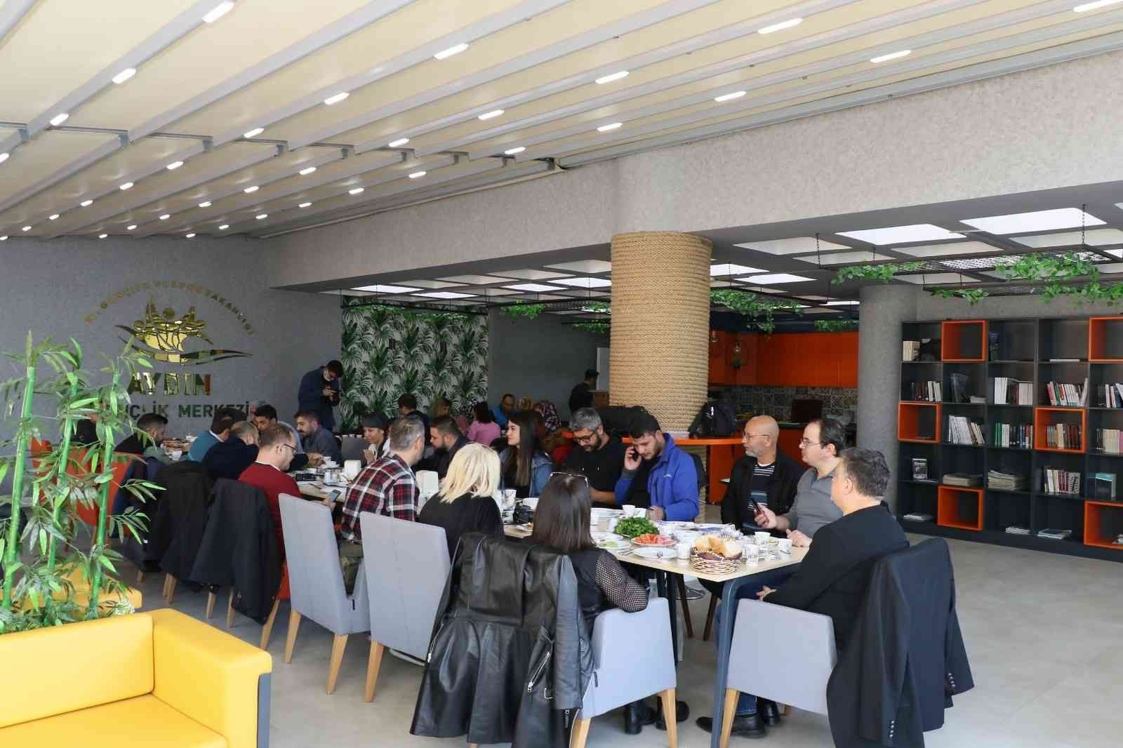 Gençlik Merkezi Kitap Kafe'de düzenlenen kahvaltılı toplantıya Aydın'da görev yapan gazetecilerin yanı sıra şube müdürleri de katıldı.
